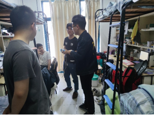 学生第二党支部书记、20级带班辅导员洪宝华老师,教工第二党支部书记宋海裕老师带队,各班主要班委、园区工作站干事一起,对20级全体学生寝室进行了走访。