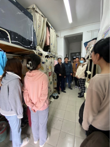 院长张帅、院党委书记徐奇伟、院党委副书记田聪及全体辅导员老师带队走访学生宿舍。