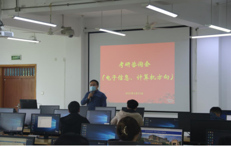 于4月19日下午举办了电子信息、计算机科学与技术和管理与科学工程2个考研方向的现场辅导咨询会。