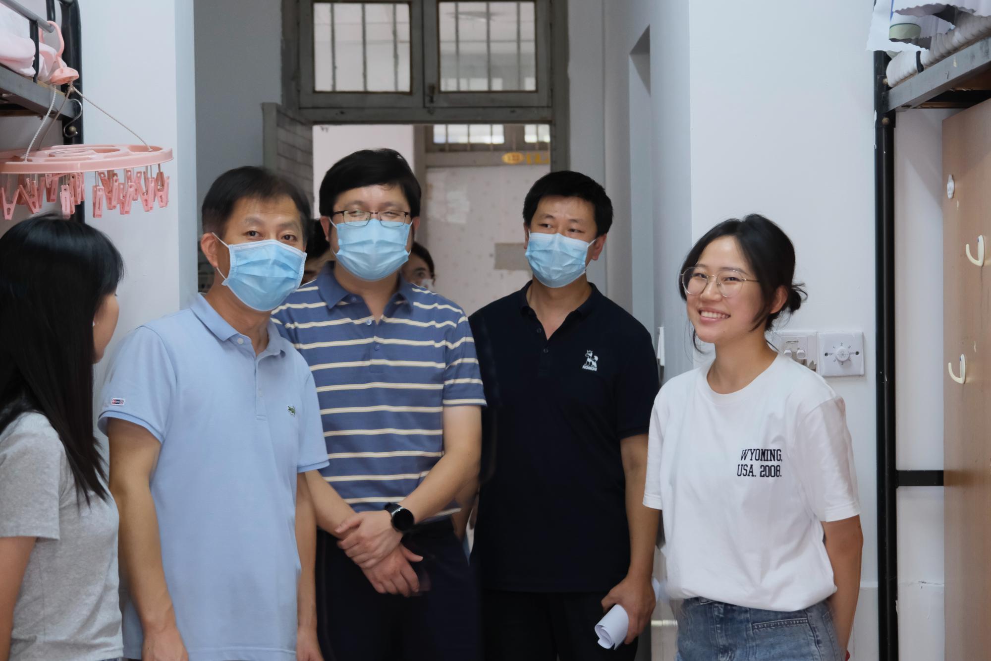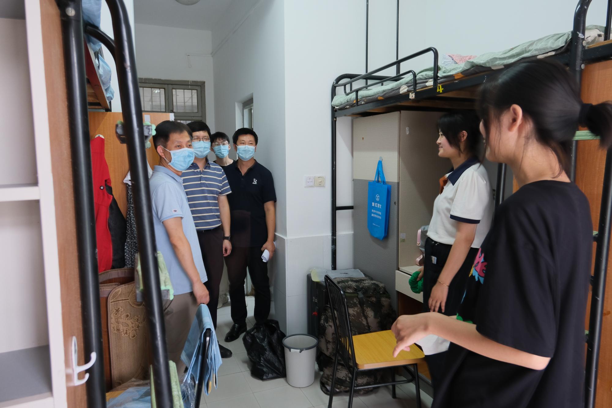 喜迎2022级本科新生入学报到。下午,为了解新生入住情况,强化新生安全意识,院长张帅、院党委书记徐奇伟、院党委副书记田聪、院团委书记毛立晨以及新生辅导员马硕共同走访了新生寝室,为刚刚加入巴卡漫画