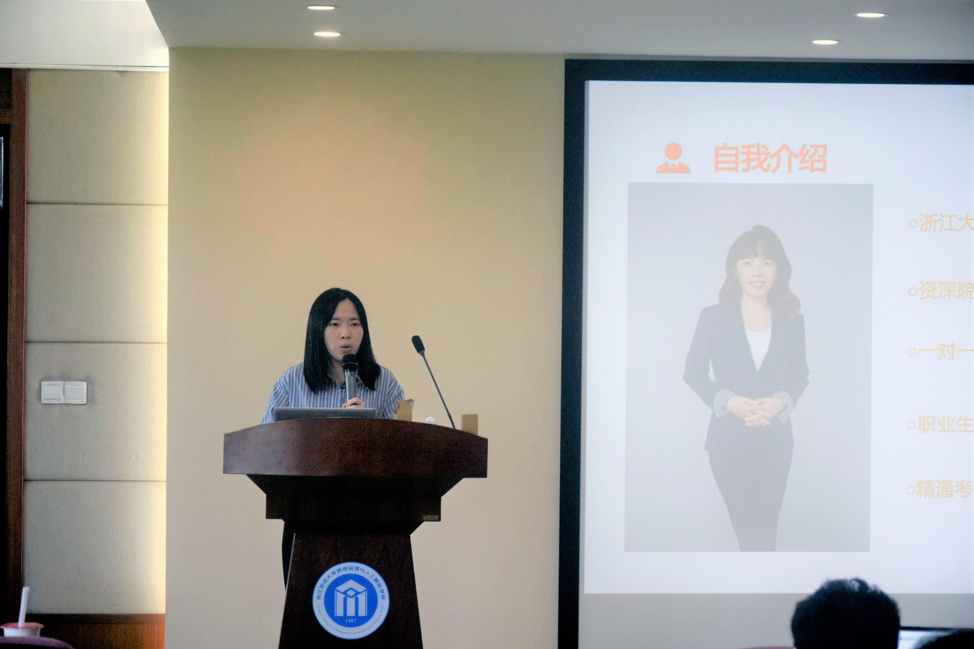 特邀高顿教育资深考研指导老师黄娇红为21级学生带来考研启蒙讲座,院团委书记毛立晨、19级本科生韩书焕和黄倩也分别分享了自己的出境留学指导和国内考研经验。