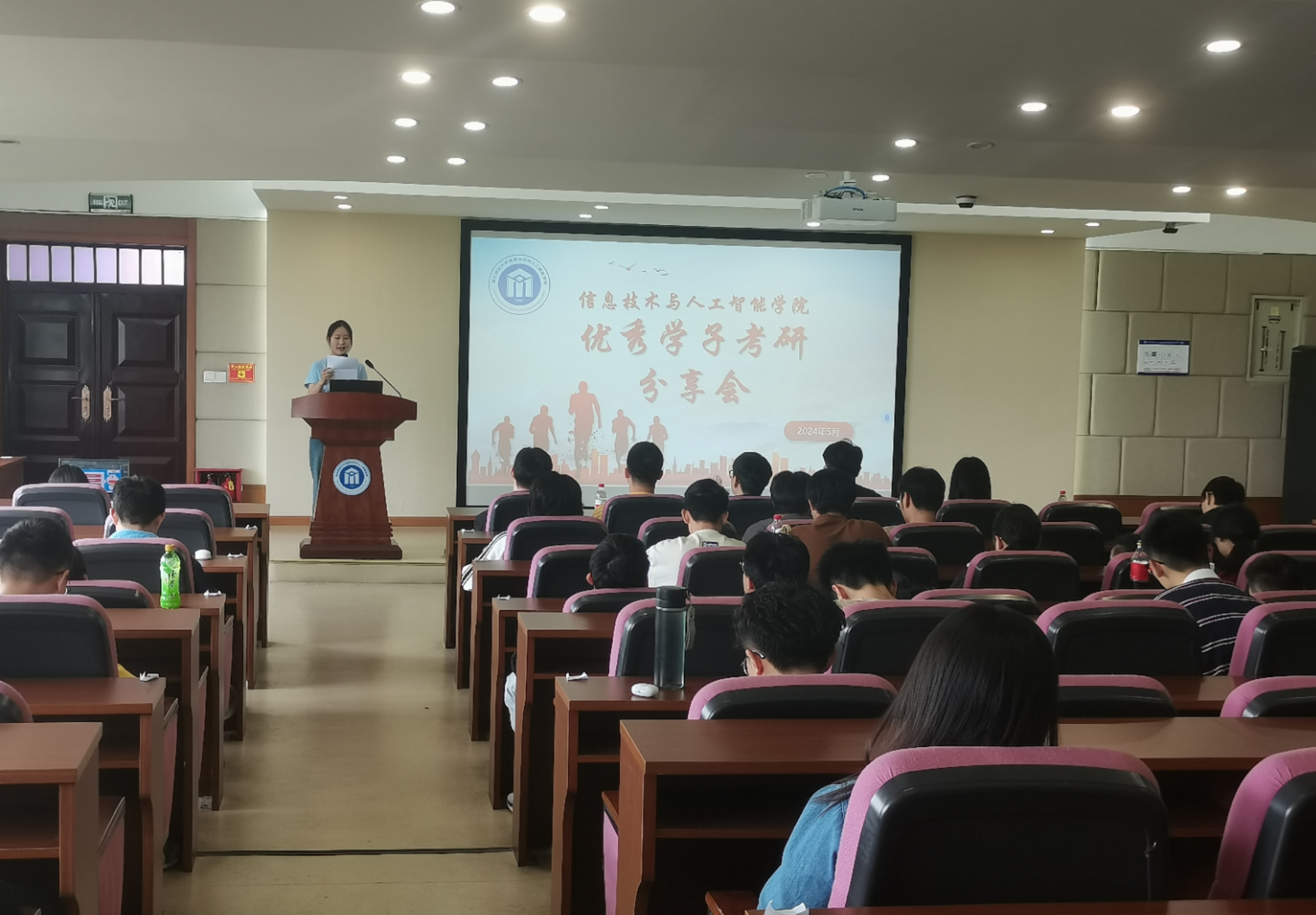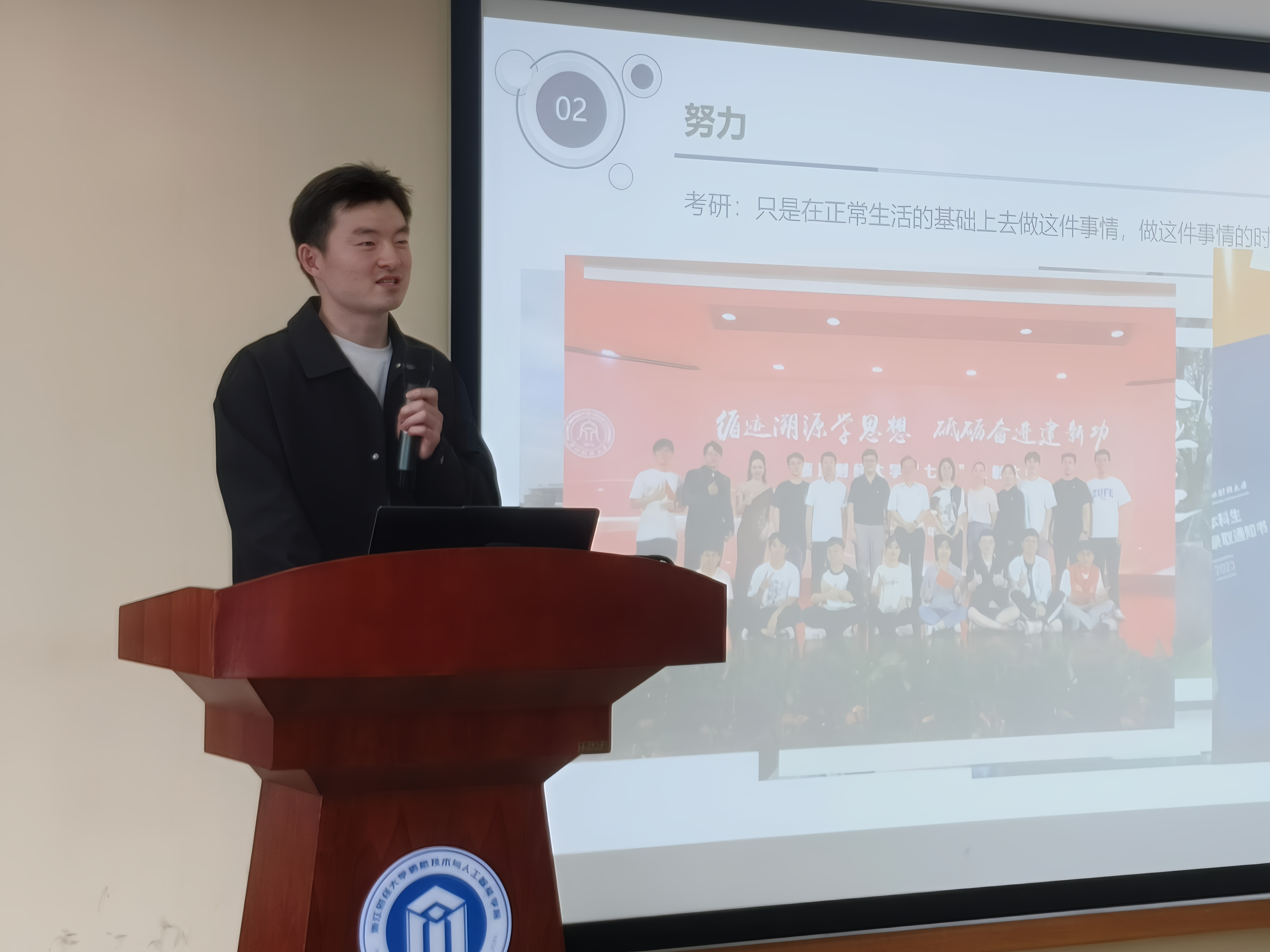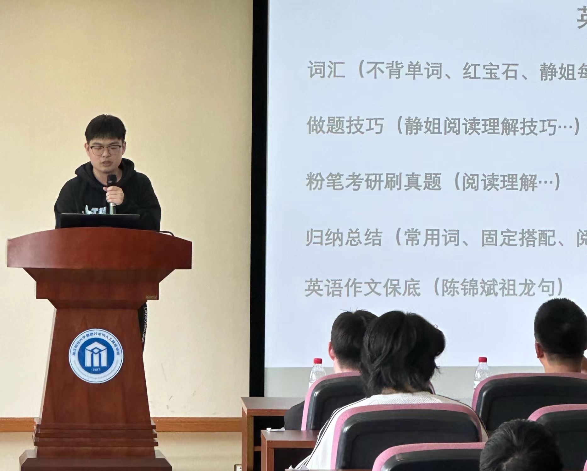 洪宝华老师通过分析学院历年的升学和就业情况,从院校选择、专业发展、职业规划等方面给同学们提出了宝贵建议,同时表达了对同学们一战成“硕”的美好期望和衷心祝愿。