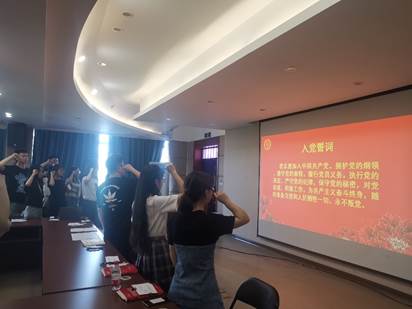 会议伊始,支部书记洪老师带领大家重温入党誓词,不忘党员初心,牢记党员使命,从思想上向党组织靠拢,从行动上发挥先锋模范作用。
