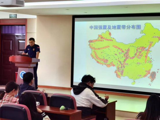 随后,保卫处副处长、党支部书记吴俊介绍了学校消防安全、无诈校园建设、宿舍用电安全以及学校疫情防控制度等,呼吁同学们积极参加学校消防安全演练活动。他希望同学们在日常生活中绷紧消防安全弦、防患于未然,牢固树立安全意识,掌握自救技能。