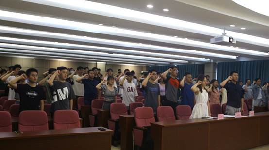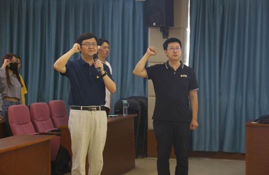 仪式开始后,在徐奇伟书记的带领下,全场师生党员高唱国歌,面向党旗庄严宣誓,所有党员重温入党誓词,时刻牢记作为一名党员的初心与使命。党员们铿锵有力的声音,表达了对党忠诚的坚定决心。