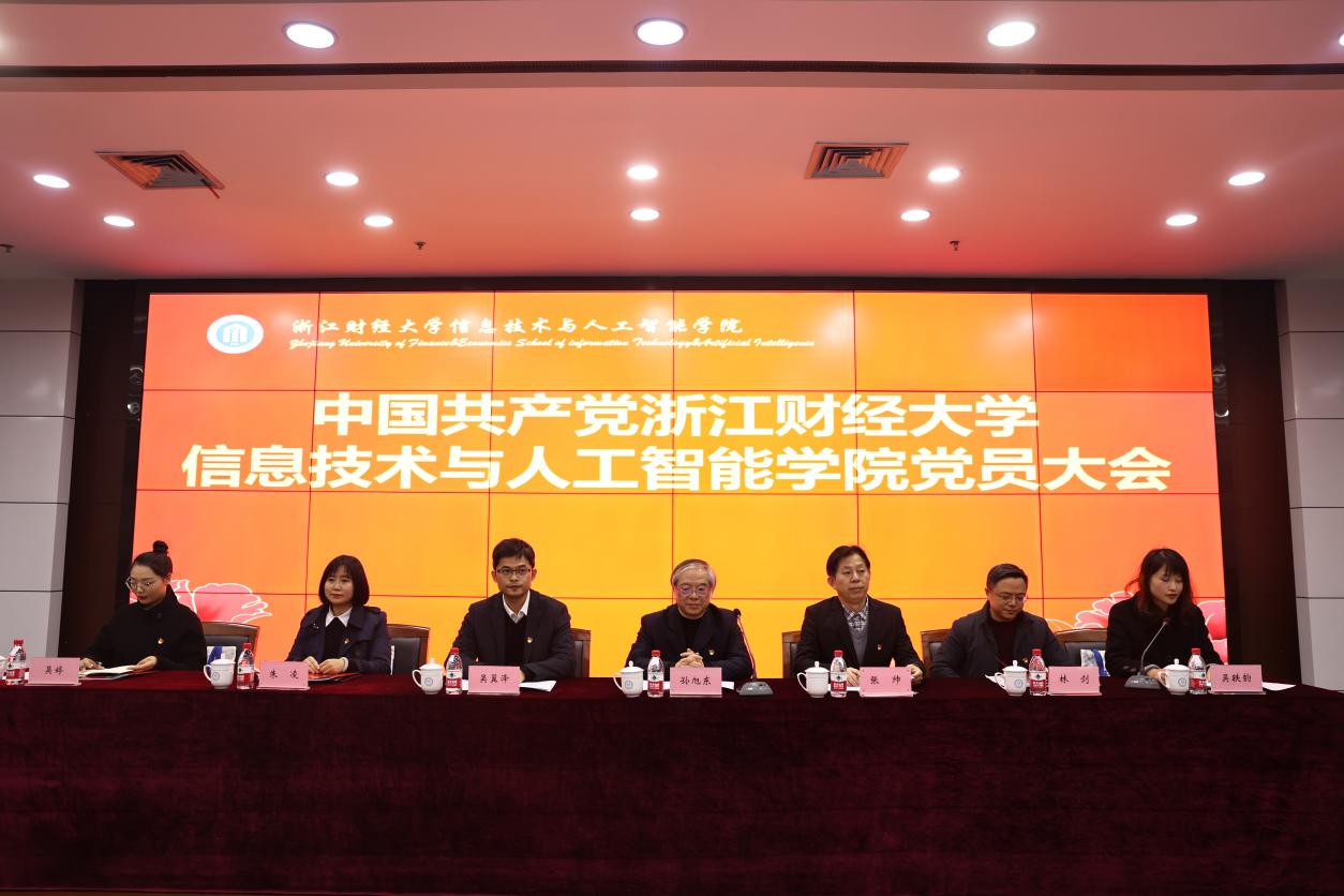 学院党委书记吴翼泽代表党委作题为《满怀信心启新程 改革创新谋发展,为建设国内财经类高校一流计算机学院而努力奋斗》的工作报告。报告从六个方面总结回顾了学院2020年党员大会以来的主要工作和取得的显著成绩,包括党的建设工作全面加强、党建引领育人成果丰硕、人才培养成效持续凸显、人才队伍建设扎实推进、学科专业建设实现突破、服务管理体系逐渐完善等。报告认真总结了学院党的建设和事业高质量内涵式发展道路的宝贵经验,提出了当前发展存在的短板和不足。他强调,要深入领会学校“新财经战略”使命愿景,团结带领全院师生,不断提升学院综合实力和人才培养质量,奋力建设计算机学科特色鲜明、人工智能与经管学科深度融合、部分学科方向有一定国际学术影响力的计算机学院,通过一任接一任的接续奋斗,把学院建设成为国内财经类高校一流计算机学院。