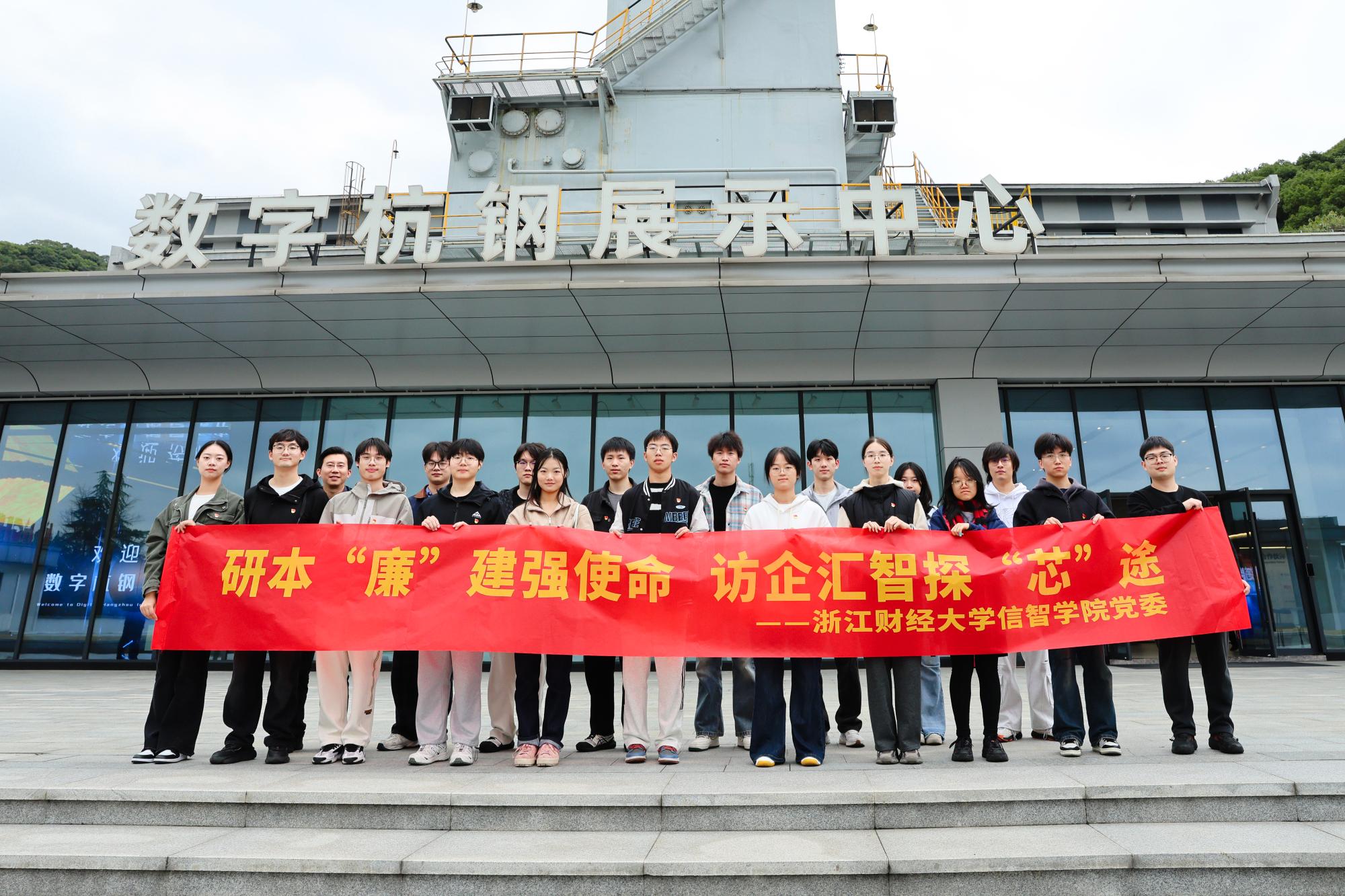 随后,师生一行前往浙江省党员教育培训基地——杭钢文化展示中心开展“循迹溯源学思想促践行”。在杭钢转型发展的重要关头,时任浙江省委书记的习近平同志曾两次到杭钢集团考察指导。展厅内“杭钢赋”“艰苦奋斗”“创新图强”等十大板块,全景展现了杭钢集团六十余载砥砺奋进的发展历程与企业精神的赓续传承。在“党建引领”展区,同学们久久驻足,从国有企业党建与廉洁治理的生动案例中汲取精神养分,进一步加深了对“使命文化”在实业报国中重要作用的理解。