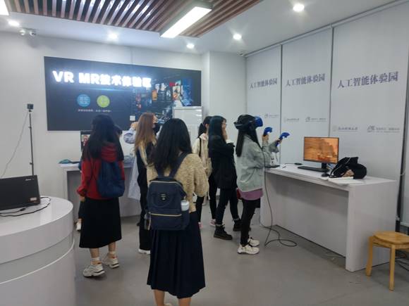 在创业学院楼1楼西建设人工智能体验园,占地面积204平方,设备价值近120万元。目前,人工智能体验园由视频展示介绍区、机器感知区、互动体验区、机器执行区、虚拟现实区、综合应用区和互动体验区等六部分构成。拥有语音识别演示系统、视频融合演示系统、人脸融合展示系统、图像风格转移系统、可视化神经网络演示系统、六轴视觉机械臂、人机对弈棋盘、车载视觉防卫系统、激光雷达车载套件、虚拟现实解决方案、增强现实解决方案、互动编程试验箱等设备。