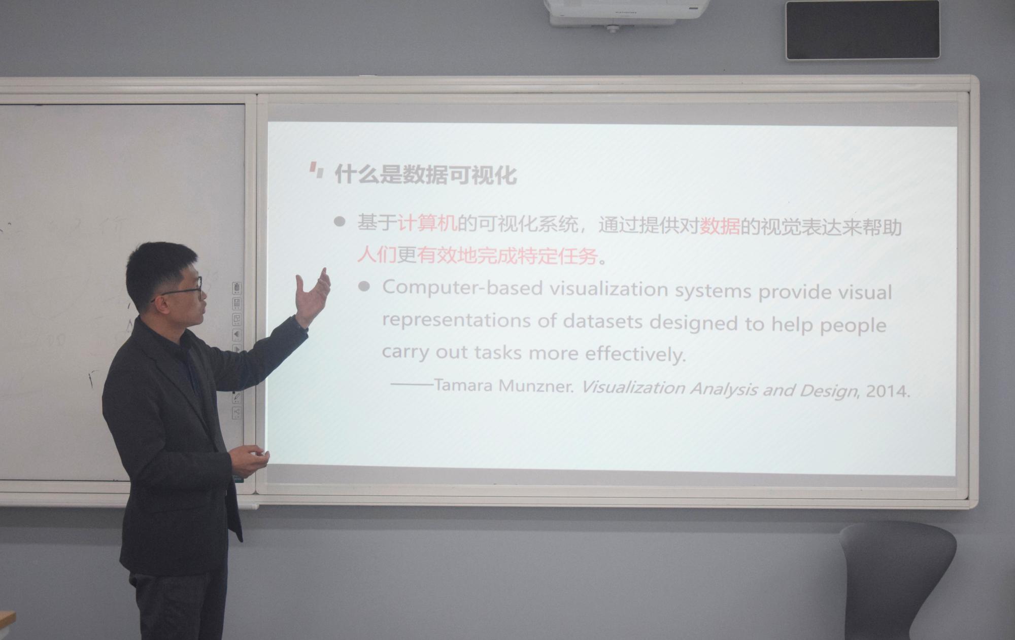 涂乐老师展示了首次数据可视化课程,通过视频与图片对课程的基础概念进行了简要阐述,并拓展至实际场景中,展示了不同数据的类型及可视化方法。课程深入浅出,使学生对可视化系统的理论与作用效果有初步的认识,并提升学生对于数据可视化的兴趣,形成解决实际应用问题的方法能力。