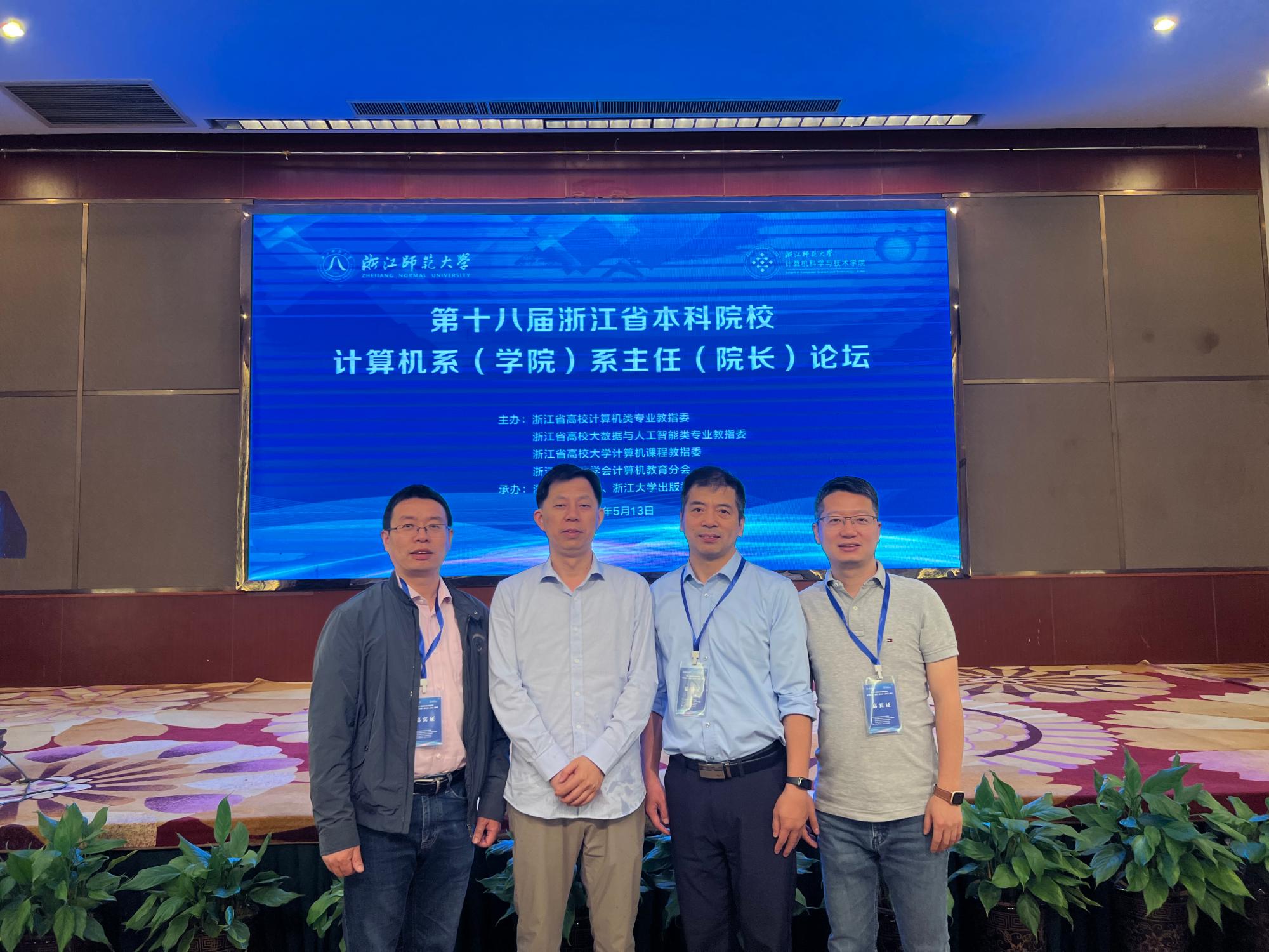 人工智能学院院长张帅教授、浙江师范大学计算机科学与技术博士点负责人李明禄教授、上海交通大学计算机科学与工程系主任吴帆教授、浙江大学人工智能研究所所长吴飞教授、浙江大学人工智能研究所副所长肖俊教授、杭州电子科技大学计算机学院副院长张建海教授等省内外知名专家应邀参会,并围绕计算机学科建设发展与人才培养、工程教育等主题作了发言。