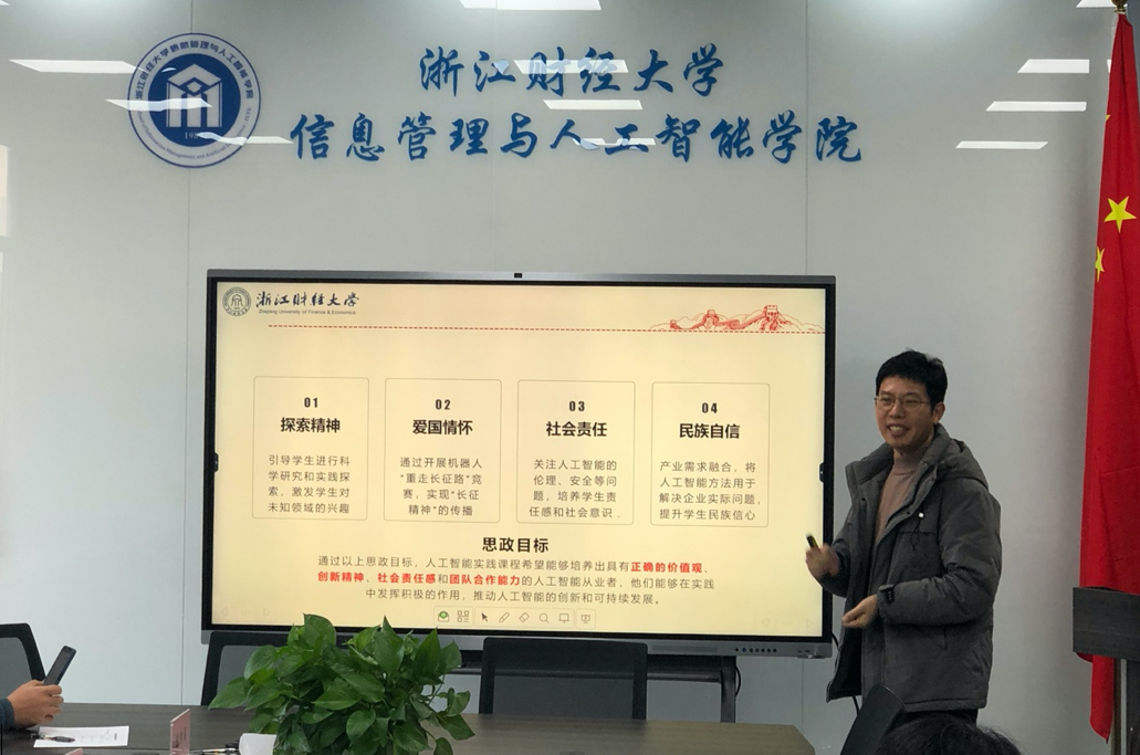 参赛课程:《人工智能实践-机器人创新与实践》是一门涵盖机器人技术与人工智能应用的课程,面向人工智能智能和软件工程专业学生开设。课程教师团队在多年的授课中积累了大量经验和创新改革,提出了以教学、竞赛、科研、产业为主的“一体两翼三驱动”教学体系,并融合了以“重走长征路”为案例的爱国主义教育,为学生提供了丰富的跨学科课程,同时鼓励学生积极参与实践项目,培养他们的团队协作能力和创新思维,使其能够跨越学科边界,解决复杂问题,培养具备全面素养和社会责任感的复合型人才。