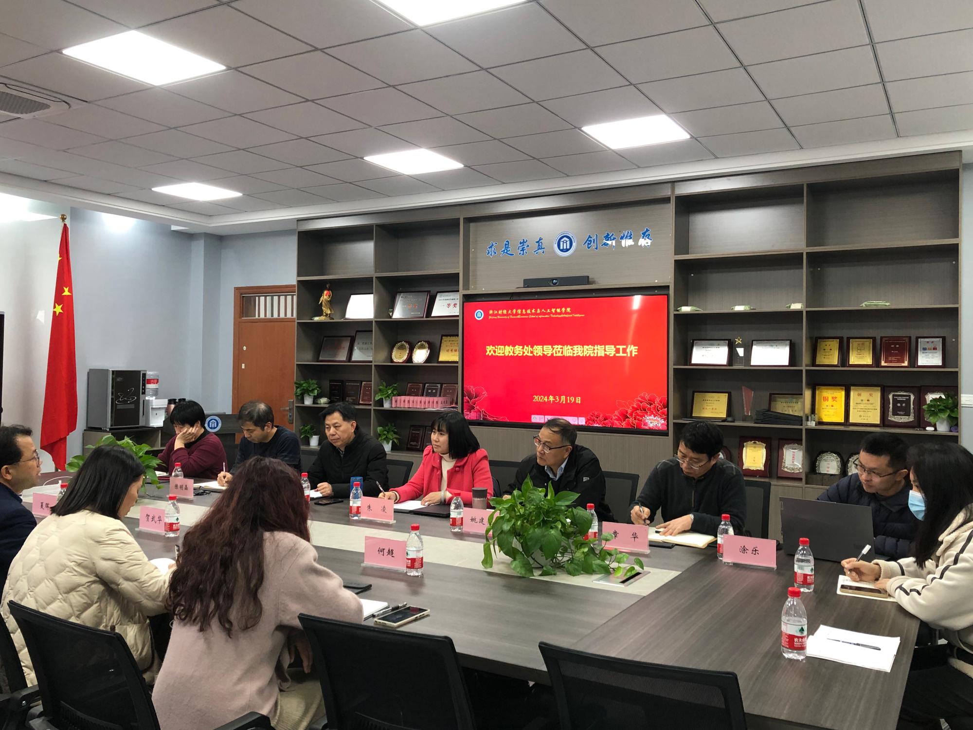 就人工智能通识教育及工程认证开展调研指导,教务处副处长张少华以及教务处夏晖、孙静、何超三位老师随行,学院院长张帅、副院长朱凌、院长助理陈明晶、人工智能领域专家姚建荣、实验中心主任章华、人工智能通识课负责人刘亚楠、及工程认证负责人涂乐参加了会议,会议由学院院长张帅主持。