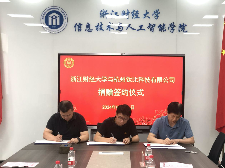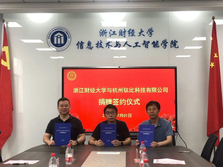 杭州钛比科技总经理潘骏表示公司一直高度关注和支持高等教育事业的发展,希望以此次课程捐赠和专业实践项目为契机推动双方合作的不断深入,共同为教育事业的发展贡献力量。