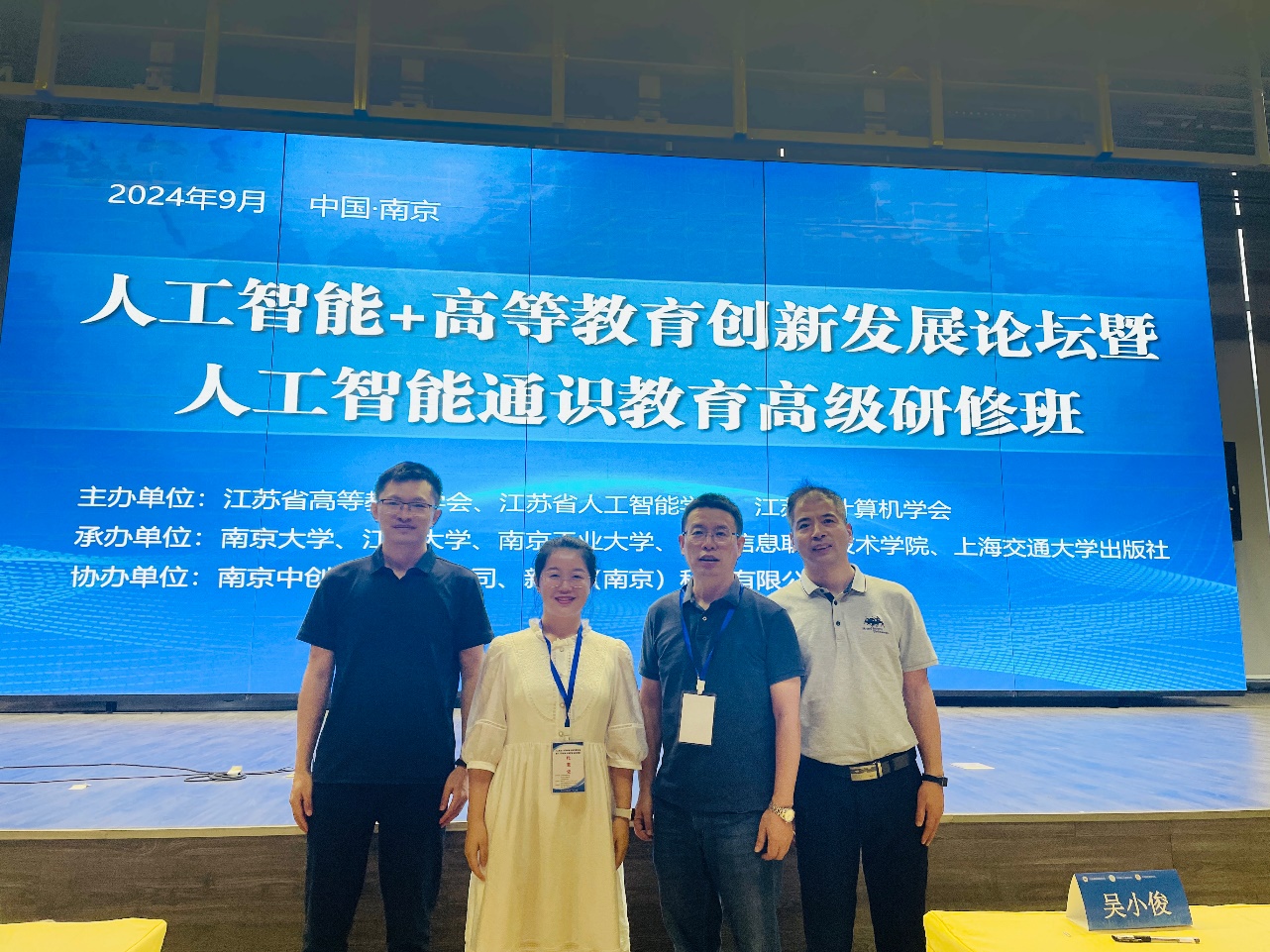 本次会议分为两个阶段,第一阶段为人工智能+高等教育创新发展论坛,南京工业大学副校长陆伟东教授,清华大学计算机科学与技术系教授、中国人工智能学会副理事长孙富春教授,南京大学本科生院常务副院长、新生学院执行院长王骏教授,中国科学技术大学信息与智能学部副部长、认知智能全国重点实验室副主任陈恩红教授,分别就人工智能赋能拔尖人才培养、计算机专业教育和通识教育等话题作主题报告。第二阶段为人工智能通识教育高级研修班,国际模式识别协会会士、亚太人工智能协会会士、江南大学研究生院院长吴小俊教授,北京理工大学计算机学院副院长、智能信息技术北京市重点实验室主任刘驰教授,江南大学人工智能与计算机学院院长方伟教授,广东科学技术职业学院副校长曾文权教授,西安交通大学计算机国家实验教学示范中心主任、教育部高等学校大学计算机课程教学指导委员会秘书长桂小林教授,南京航空航天大学人工智能学院院长、脑机智能技术教育部重点实验室主任张道强教授,东南大学研究生院常务副院长、新一代人工智能技术与交叉应用教育部重点实验室主任耿新教授,华东师范大学计算机科学与技术学院副院长、上海智能教育研究院副院长江波,南京信息职业技术学院人工智能学院院长何淼教授等专家学者,围绕高校人工智能通识教育的理念思路、课程体系构建与资源建设、典型课程教学案例分享及教材建设等方面进行了研讨交流。