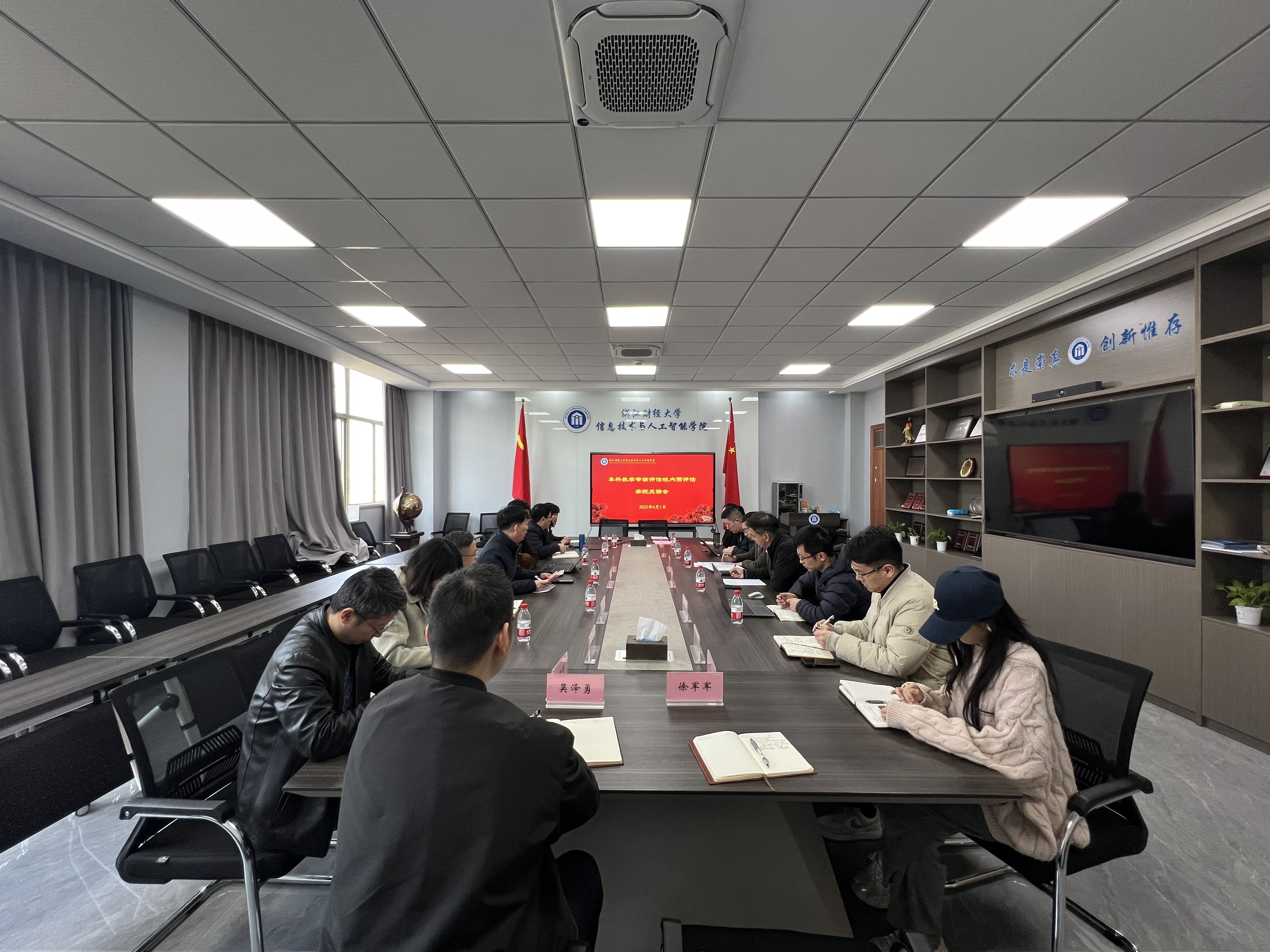 教学院长朱凌主持,学院领导班子成员、各系部主任与支部书记、本科教学审核评估工作小组成员等参加会议。会议围绕专家预评估反馈意见展开深入研讨,逐项梳理问题清单,落实整改责任,并对下一阶段迎评工作进行部署。