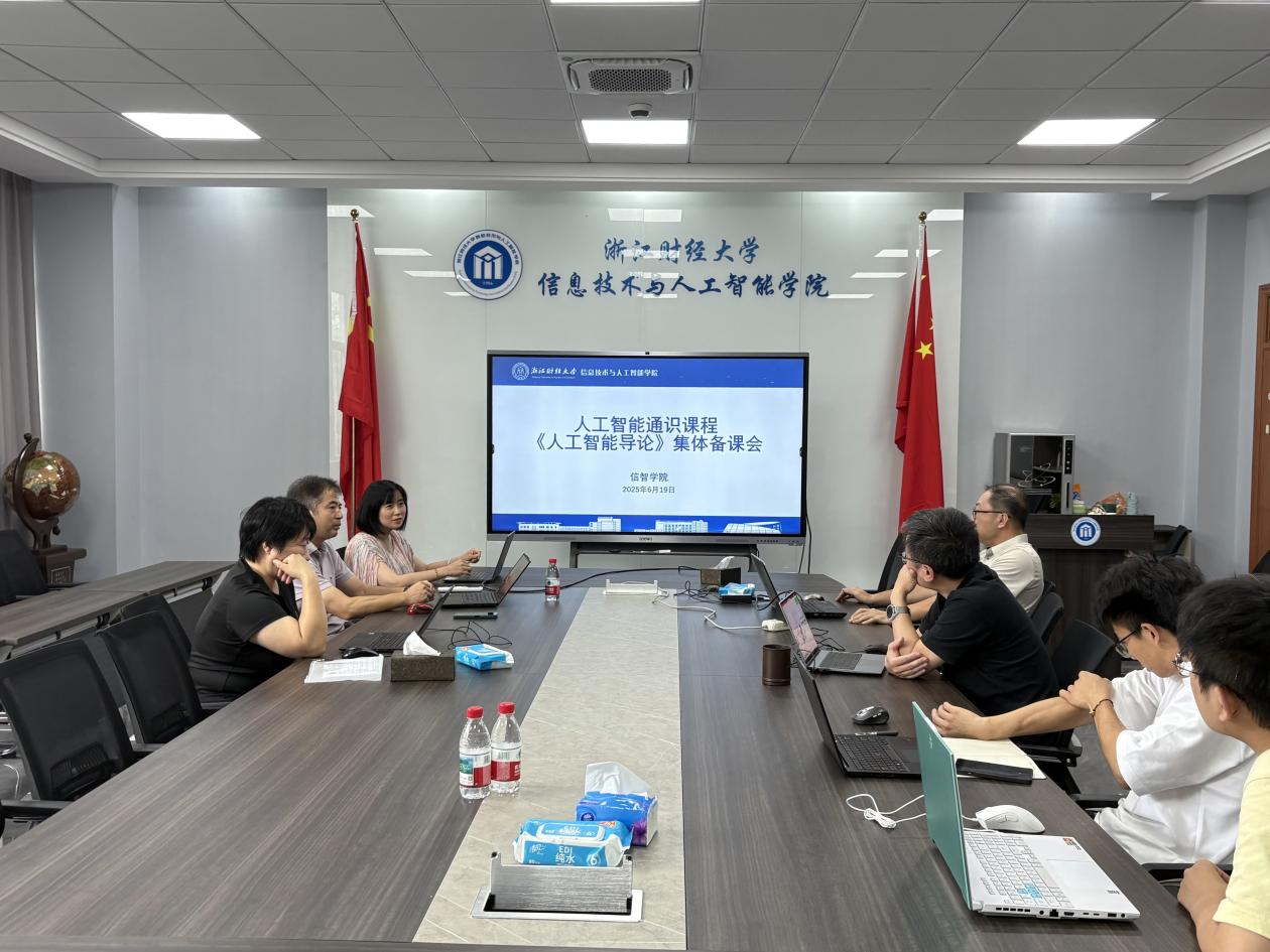 6月19日下午,《人工智能导论》通识课程组在学院楼404会议室召开第六次集体备课会。会议由教学院长朱凌主持,课程组陈明晶、刘亚楠、高刚毅、陈宪宇、姜罗罗、陈勇、胡扬帆等教师共同参会。