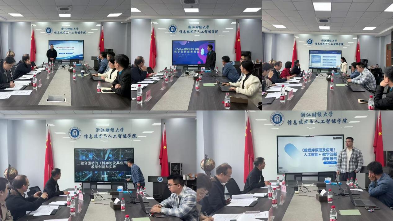 比赛现场,王凌武、石向荣、彭莉莎、姜罗罗、伍天骐五位教师按序进行教学设计创新汇报,五位参赛教师围绕课程定位、教学痛点剖析、创新举措实践等核心维度,全面展示了各自的教学改革成果与特色。王凌武老师主讲的《面向对象程序设计》课程,通过内容重构与分层设计,构建起三层思维的立体化课程内容体系;石向荣老师针对《Python数据分析》课程通过内容重构、方法创新和环境创设,提升了学生的编程能力和实践能力;彭莉莎老师的《软件设计与体系结构》课程,通过营造亦师亦友氛围、建立企业课题闭环机制、构建特色案例库进行创新;姜罗罗老师通过 AI 互动赋能、学生共同体构建、成果导向教学、学科交叉融合四大举措优化《博弈论及其应用》课程;伍天骐老师通过教学目标重构、资源智能化等为《数据库原理及应用》课程注入活力。