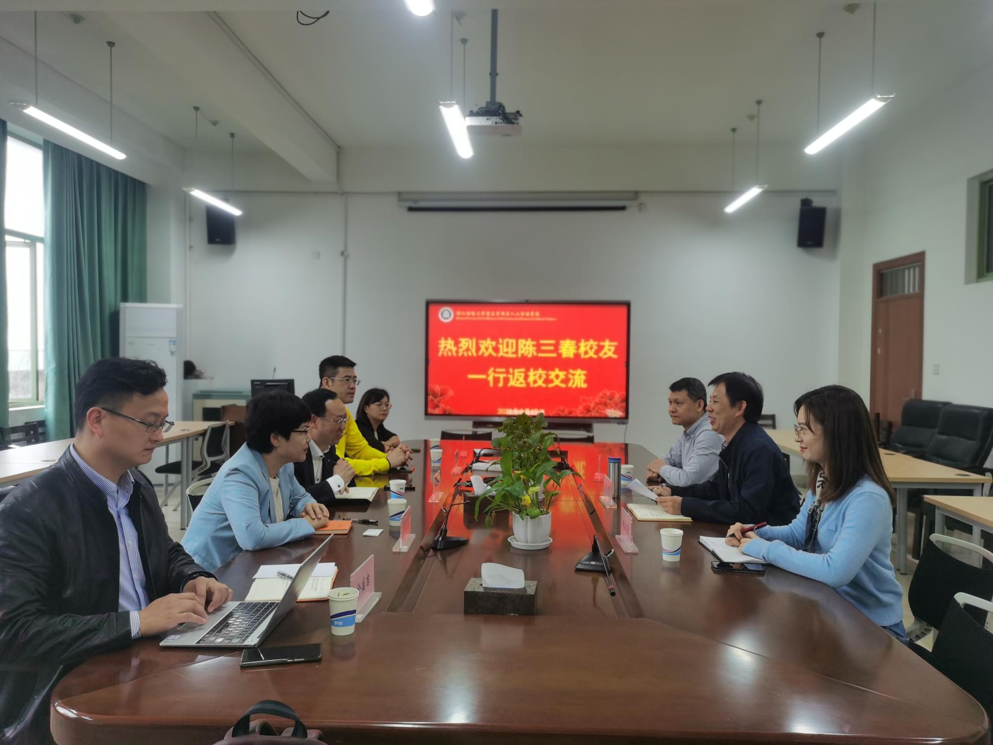 院长张帅、教授张文宇、团委书记毛立晨接待了陈三春校友一行。