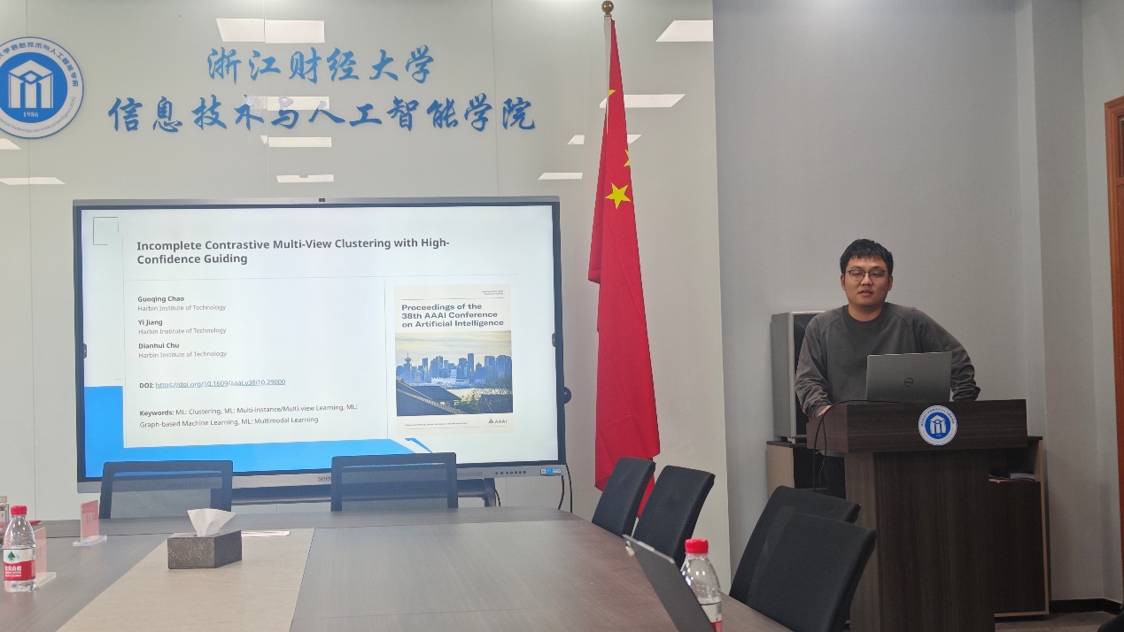 5名研究生主讲,邀请了刘亚楠副教授、陈伟锋副教授做点评专家,数名研究生参加,24级电子信息专业研究生王亚芳主持。主讲内容涵盖了考公行测经验分享、人工智能与学术道德以及Incomplete Contrastive Multi-ViewClusteringwith High-ConfidenceGuiding等热门话题。