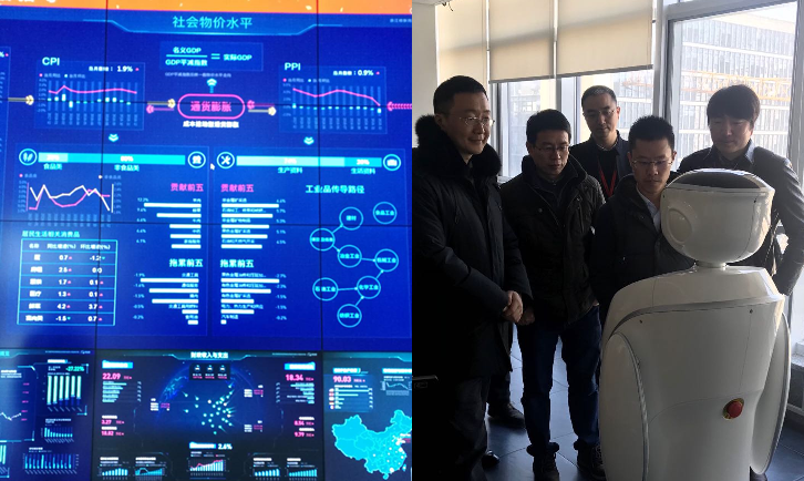 同花顺高校行业线总监朱方展示了公司的发展历程;提出了教育行业的多层次合作体系,有基于金融实践教学虚拟仿真的技术环境层,基于金融课程体系教学平台的主体内涵层,基于人才服务的增值服务层;介绍同花顺学院的金融领域课程设计等。朱总以及客户经理李志军、黄善康还陪同我们参观了同花顺公司的部分办公、休闲区域。智能机器人项目经理徐侃峰演示了具有语音识别、图像识别、语义理解、金融领域信息检索及智能合成能力的机器人。大家与机器人进行了有趣的互动。