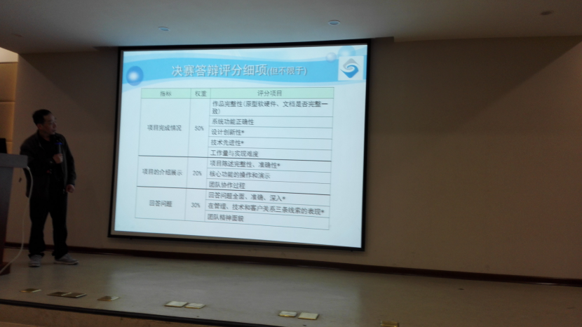 李坚老师也在讲座过程中对我们强调了相关规定,并举出历年的违规事件。同时,将评审原则做了细致的分析,使同学的作品有针对性的,有目的性的完善。李老师还将整个比赛流程中的评分权重展示出来。