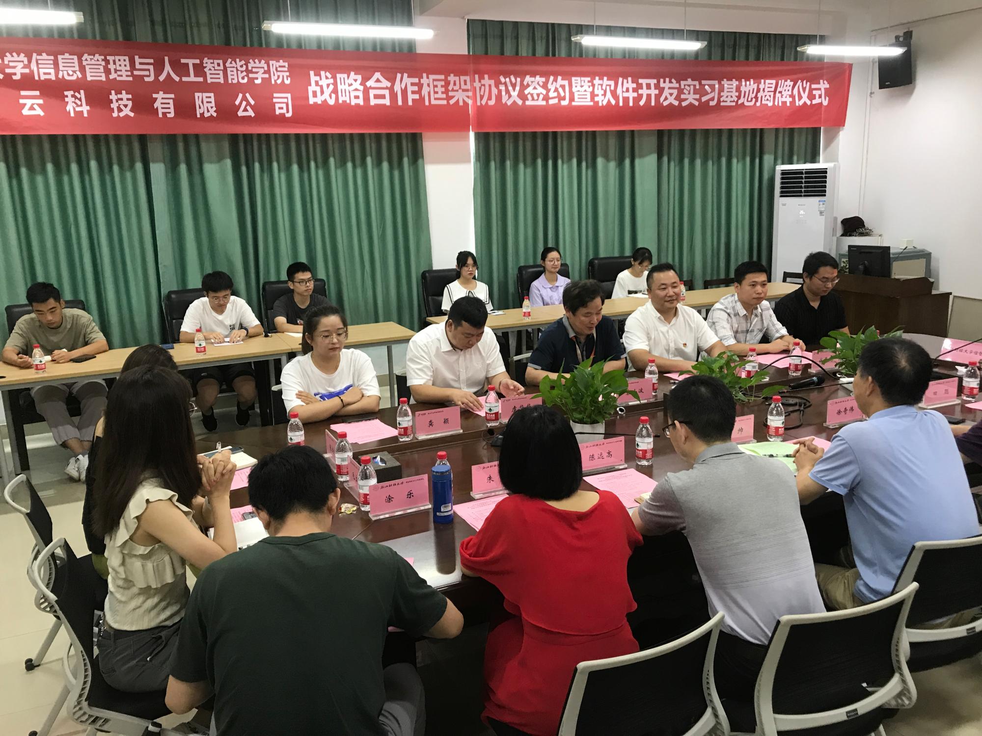 与杭州半云科技有限公司战略合作签约暨软件开发实习基地揭牌仪式在9号楼404会议室圆满举行。半云科技创始人、CEO宋小波,半云科技总经理助理丁树成,鸿创地质科技总经理虞华华,半云科技研发中心总经理钱景龙,半云科技研发中心高级工程师谢留贺、龚颖,半云科技综合管理部副主任张诗怡,巴卡漫画