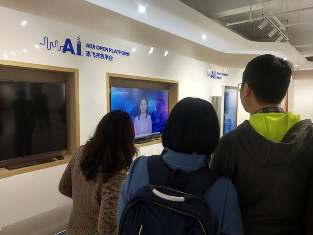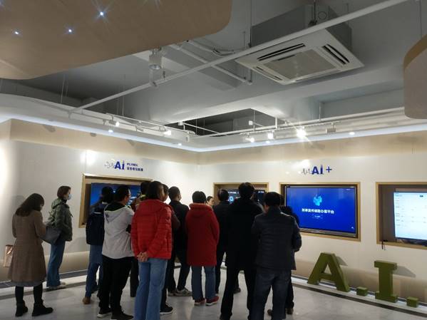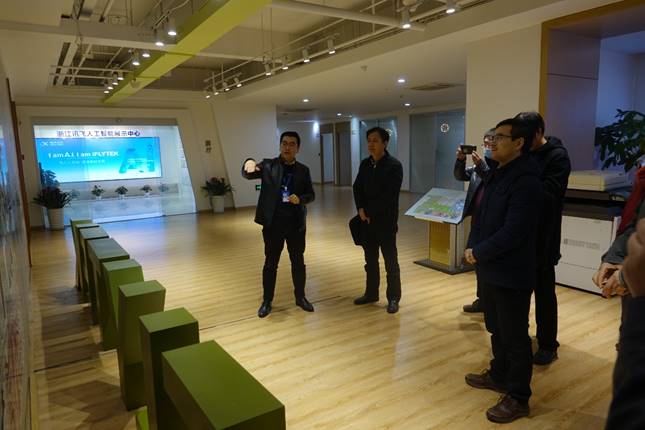 一行在汪光政的陪同下,参观了浙江讯飞人工智能展示中心,该中心由讯飞开放平台、移动互联、智能家居、语音转写终端、AI+、智能汽车、讯飞幻境、智慧教育和智能机器人等项目组成。