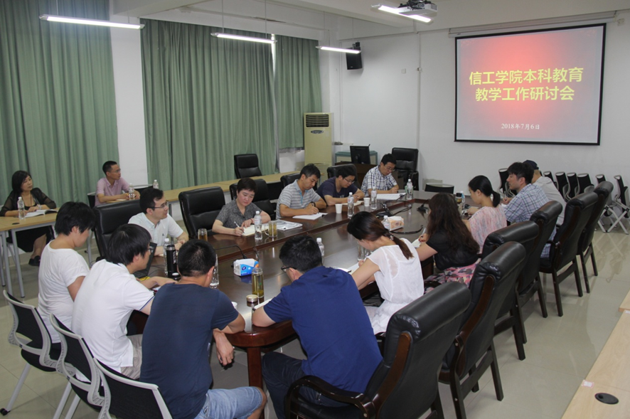 为深入学习习近平在北京大学师生座谈会上重要讲话精神,结合学院人才培养工作的实际情况,创新“三全育人”的有效机制,信工学院于7月6日上午8:30在9-404会议室召开了“学习新思想,聚焦立德树人根本任务,落实课程思政要求,构建一体化育人体系”为主题的本科教育教学工作研讨会。党委书记冯睿、副院长陈远高、党委副书记陆颋浩、各系部主任、教工与学生支部书记与副书记以及学院各办公室老师参加了本次研讨会。会议由副院长陈远高主持。