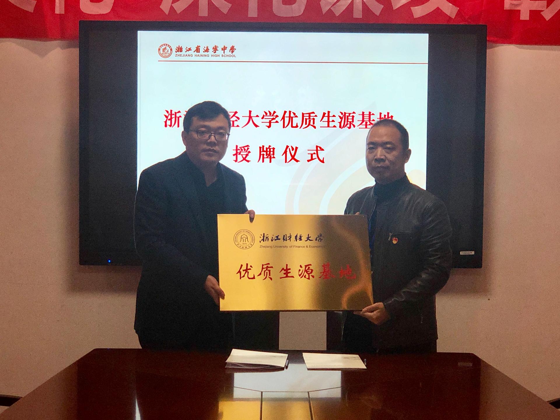 陆颋浩副书记对海宁中学的教育教学成绩表示赞赏。他简要介绍了我校的发展历程、办学特色、优势专业基本情况,着重强调了今年我校针对优秀考生的招生政策;希望进一步加强与海中的交流与合作,能够让更多的海中学子了解浙财、走进浙财,成为海中骄傲、国家栋梁。