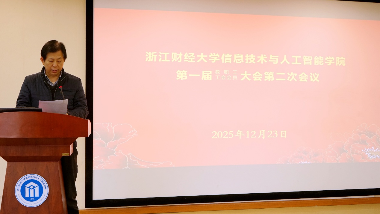 大会听取了学院张帅院长所作的2025年学院工作报告。报告既全面总结了2025年所取得的显著成绩和快速发展,客观分析了学院存在的短板不足、面临的困难挑战,提出了学院在“十五五”期间,将紧扣学校“新财经战略”定位,聚焦“智能技术赋能经管场景”核心命题,形成“财经特色鲜明、学科交叉融合、科研创新活跃、社会服务突出”的学科生态与发展格局,全面支撑学校“新财经战略”,成为数字经济领域复合型人才培养与技术创新的重要基地。