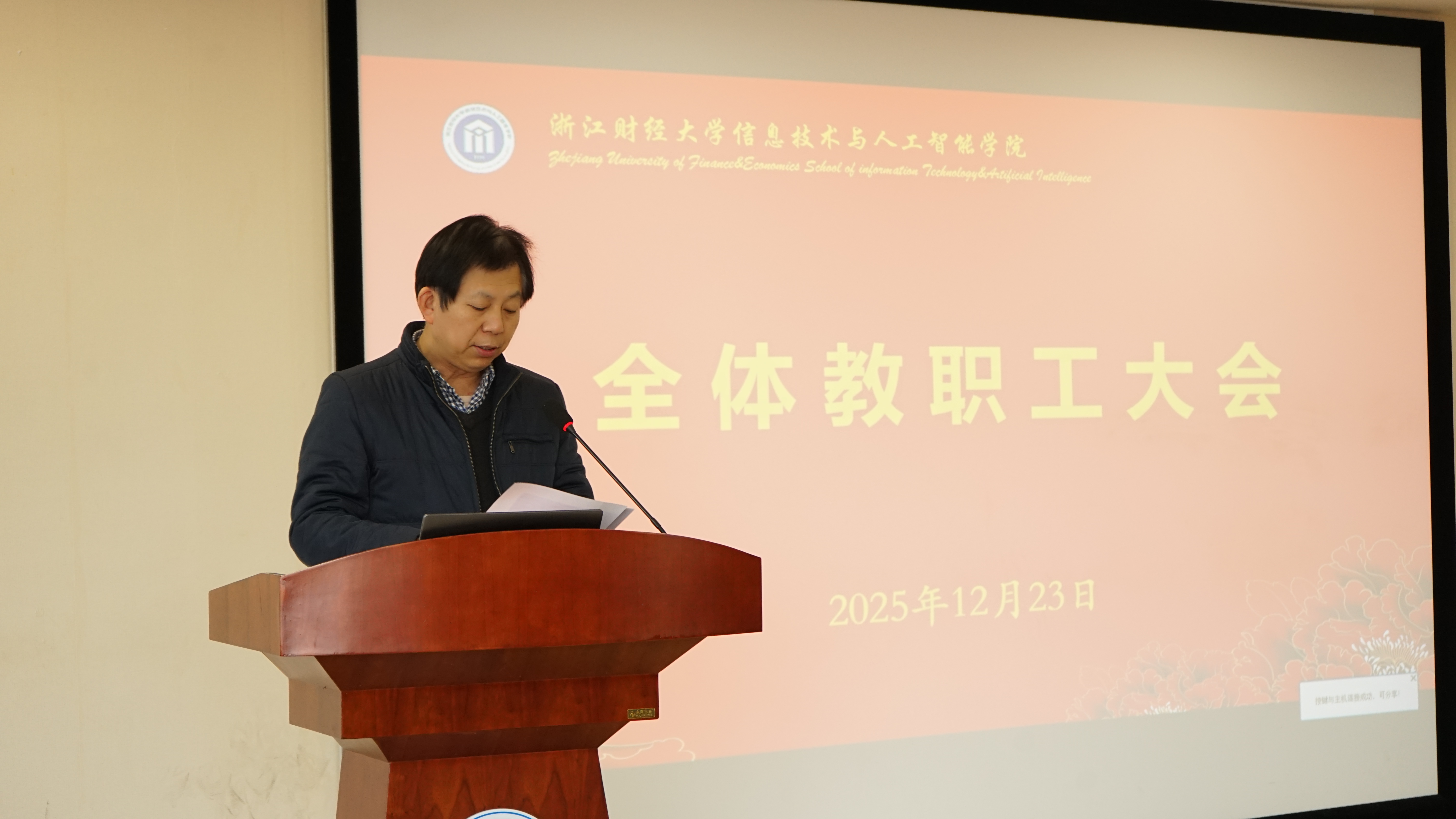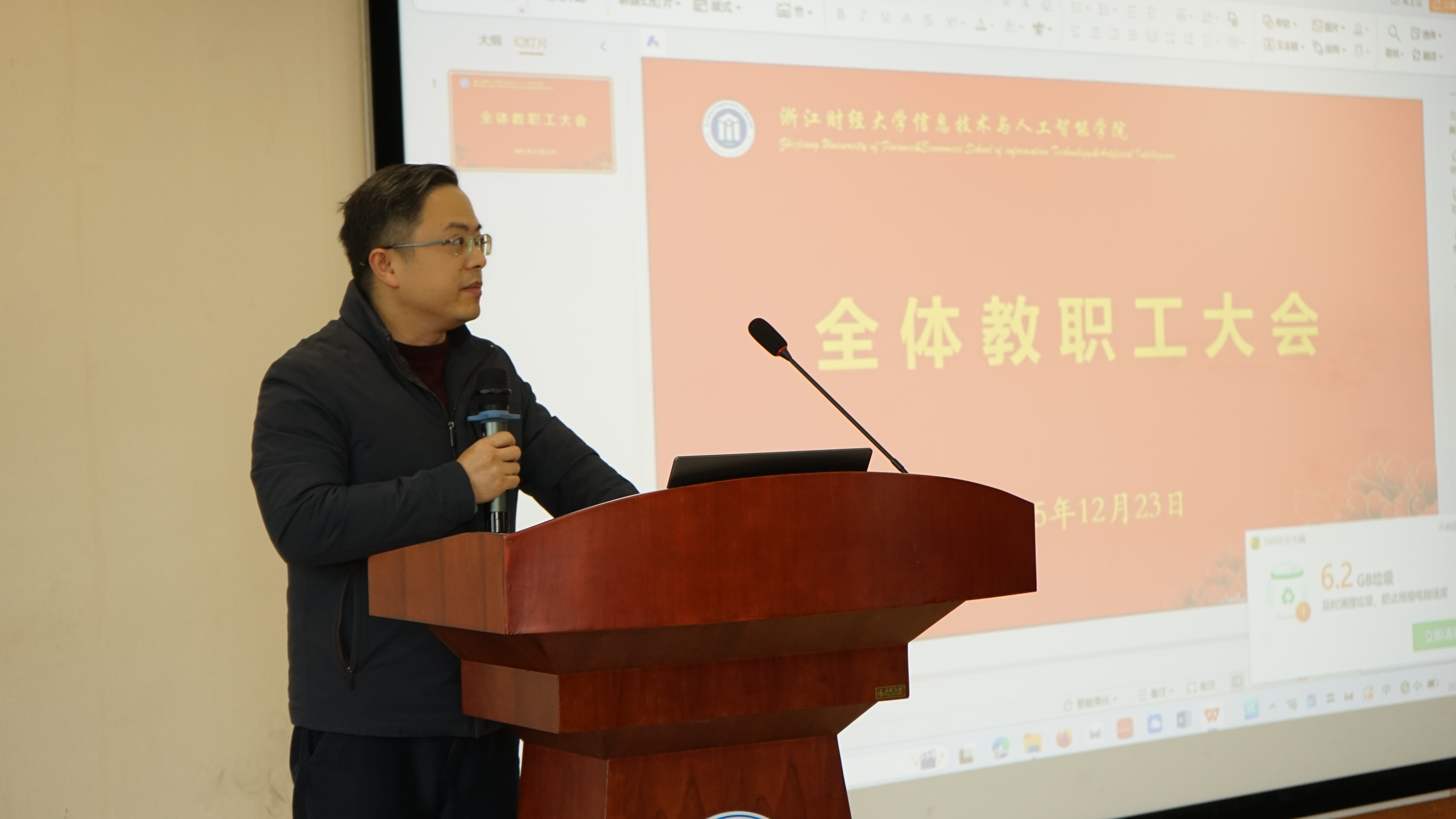 期末全体教职工大会在9号楼302报告厅顺利召开。会议深入传达学习学校近期工作精神,全面总结学院2025年度各项工作成效,并对期末重点任务进行部署。学院领导班子成员及全体教职工参会,会议由学院党委书记吴翼泽主持。